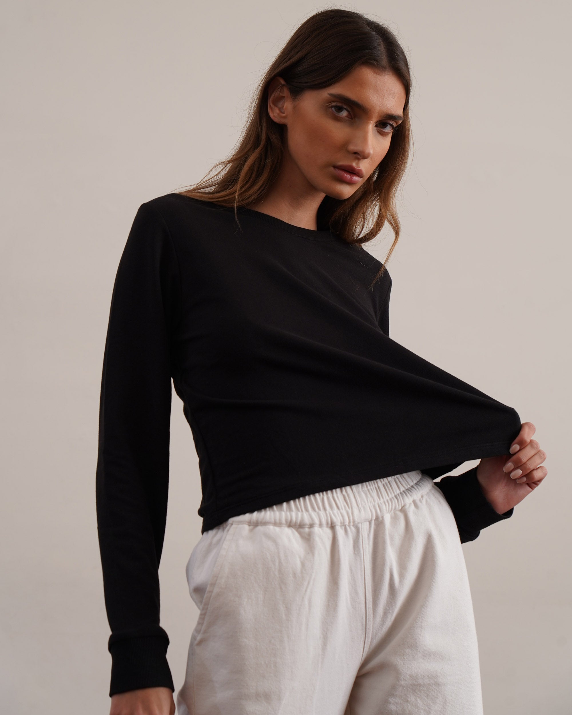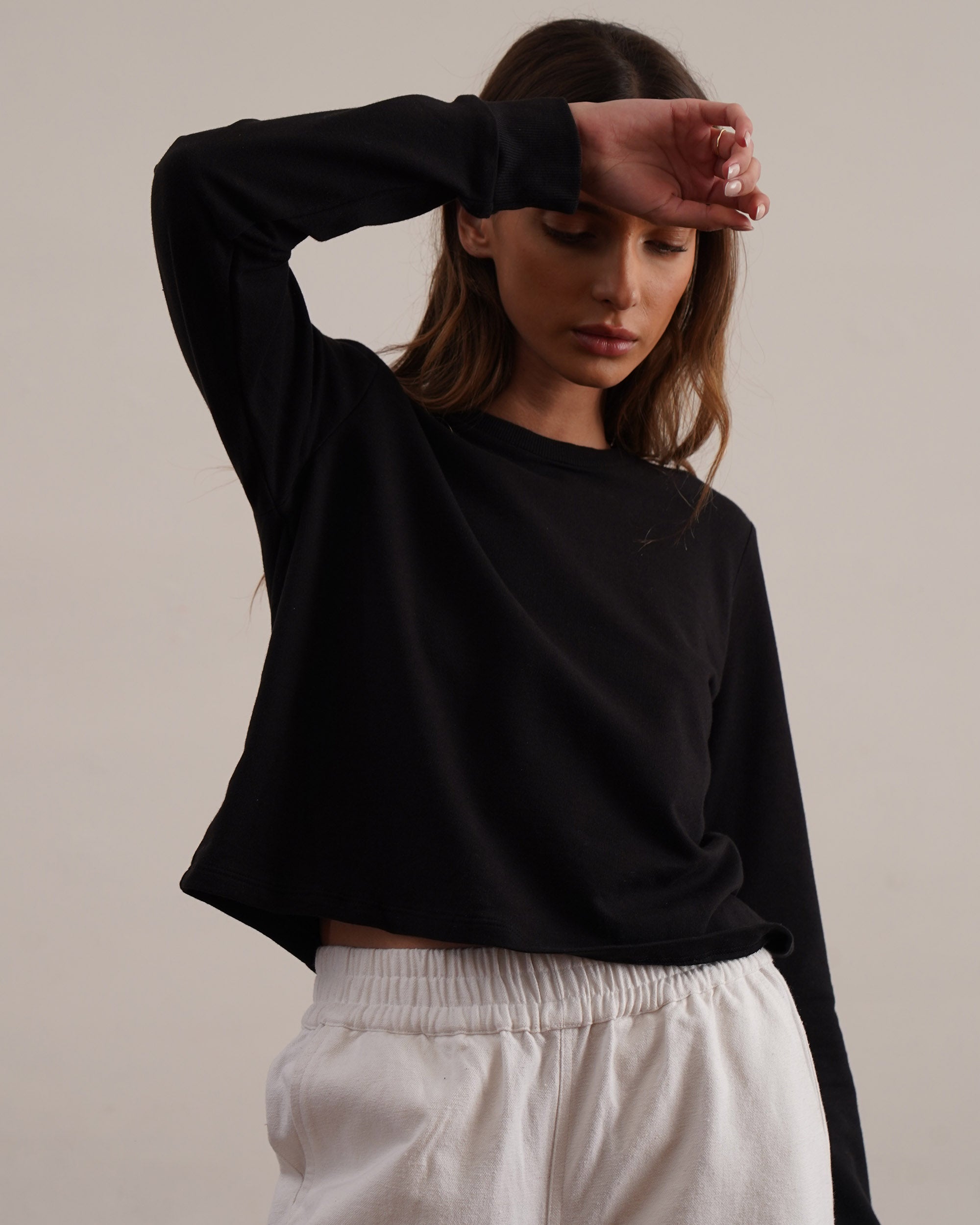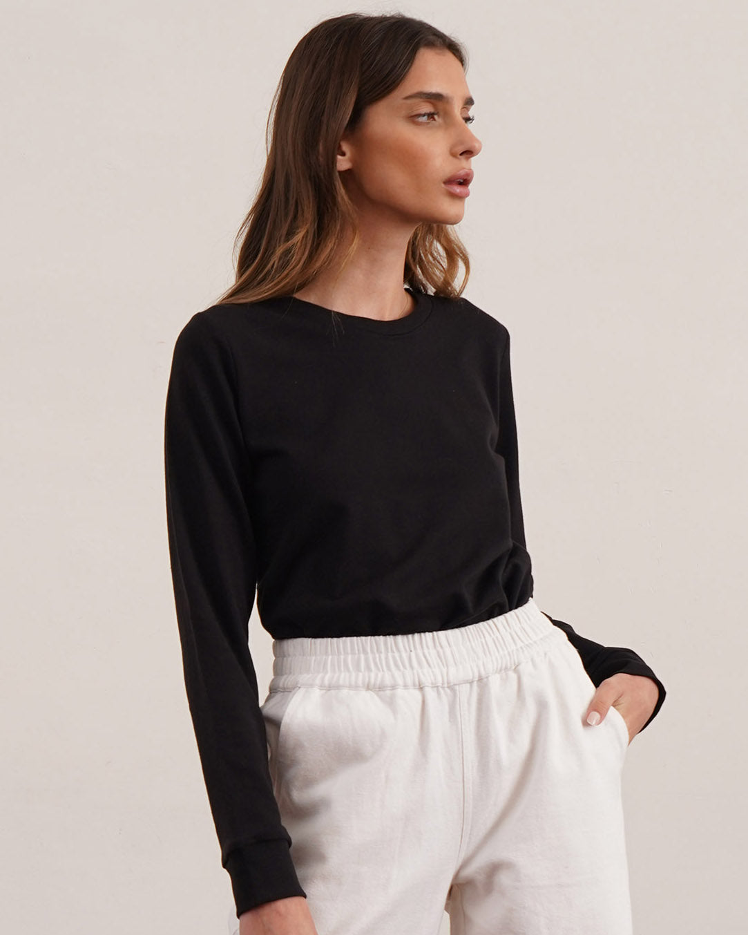 חולצת טי פרנץ' טרי 180 גרם בסגנון נשי מחמיא עשויה מ-100% כותנה רכה ונושמת.