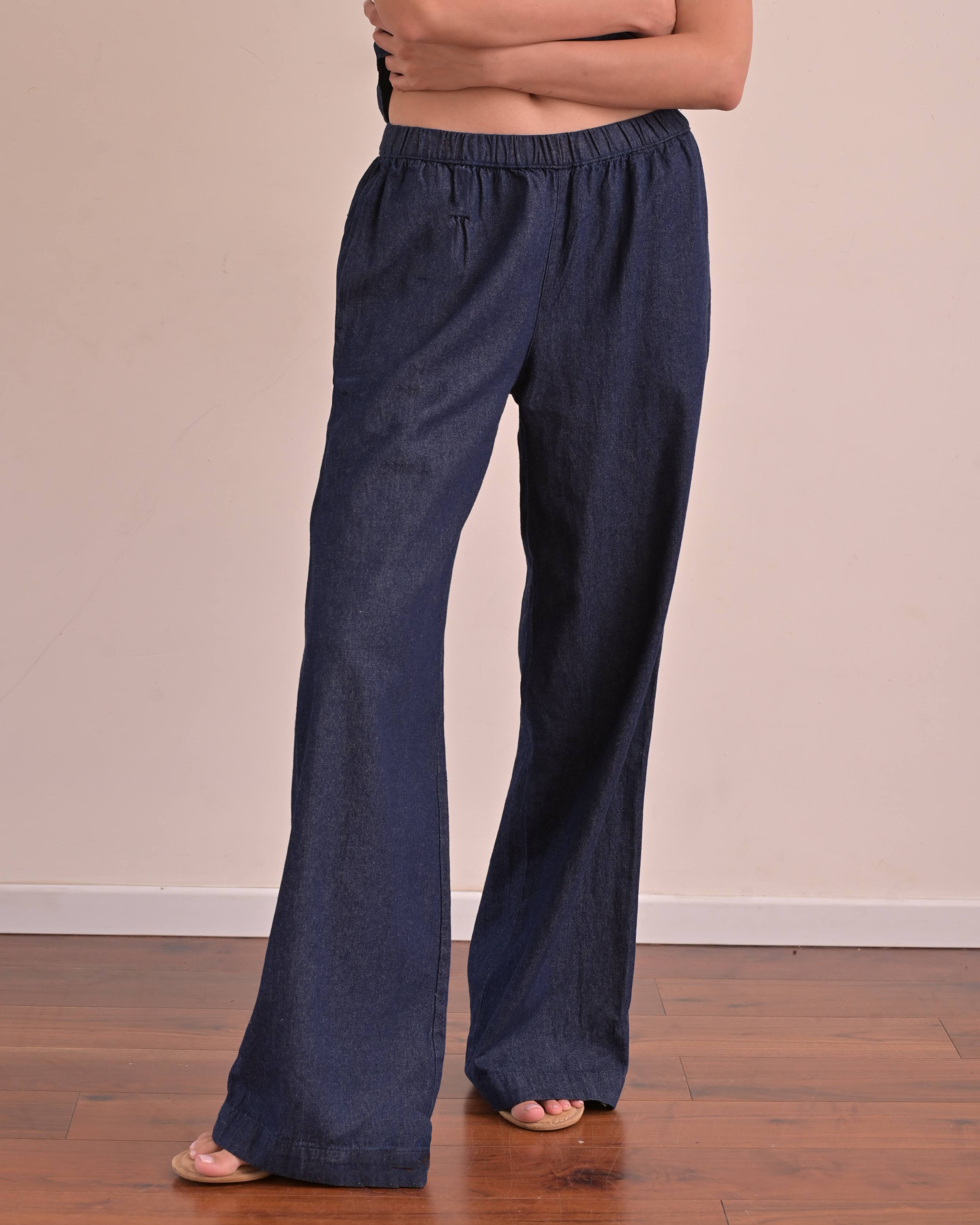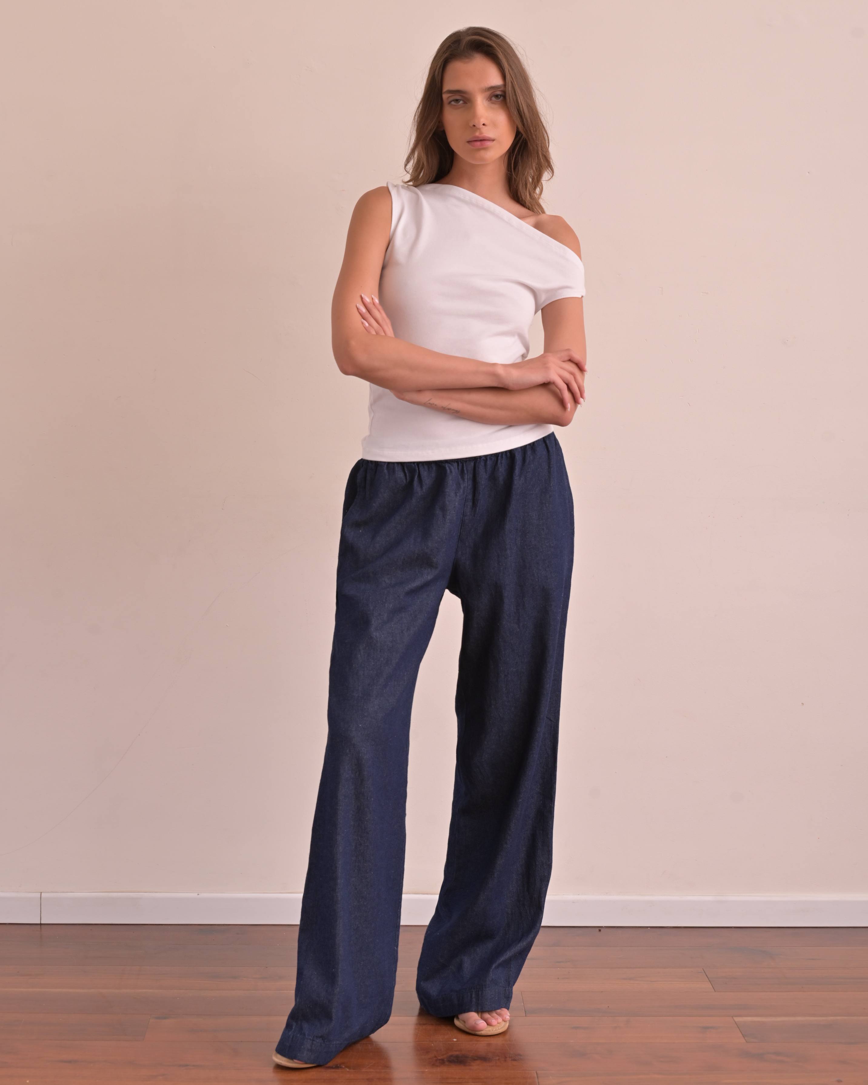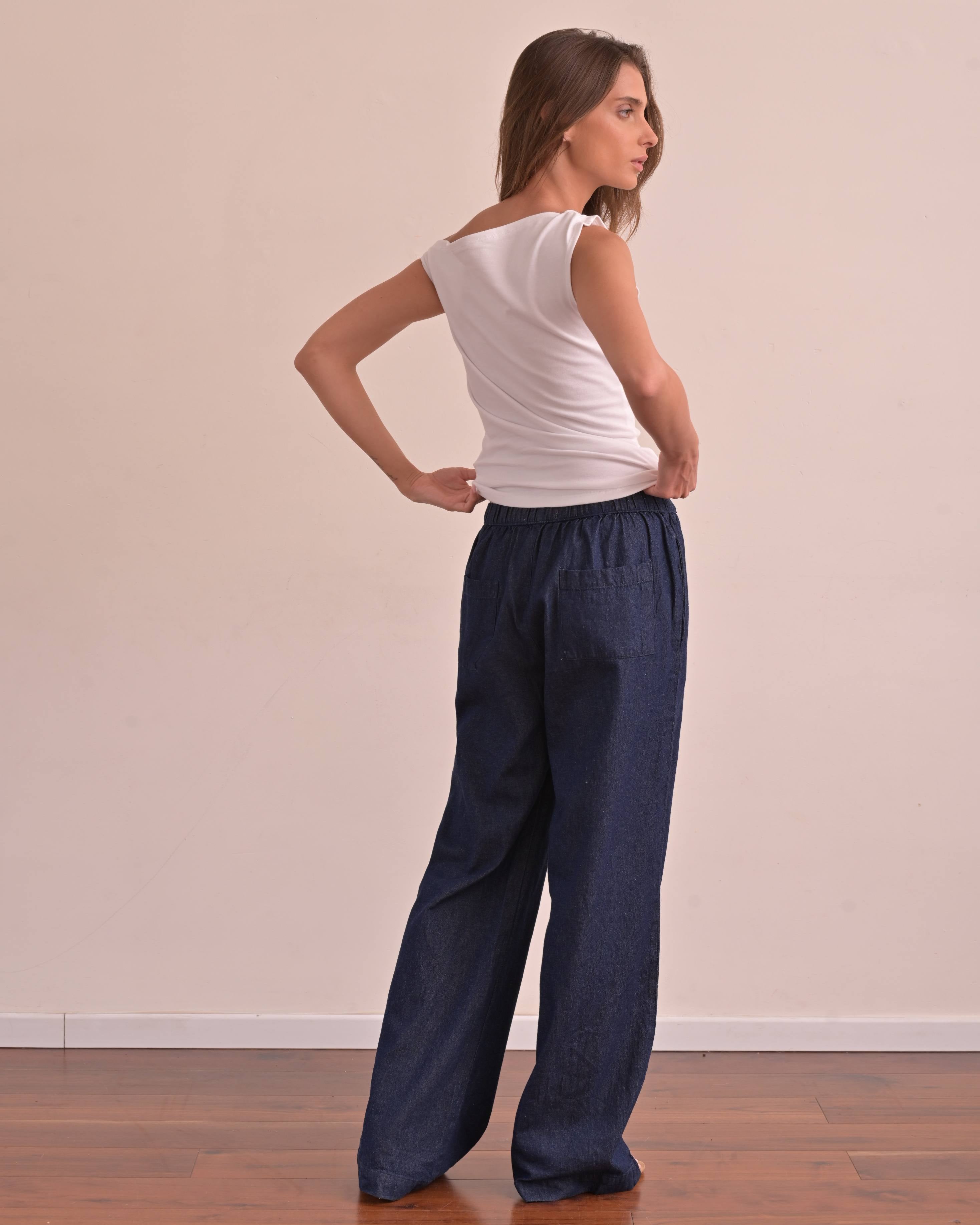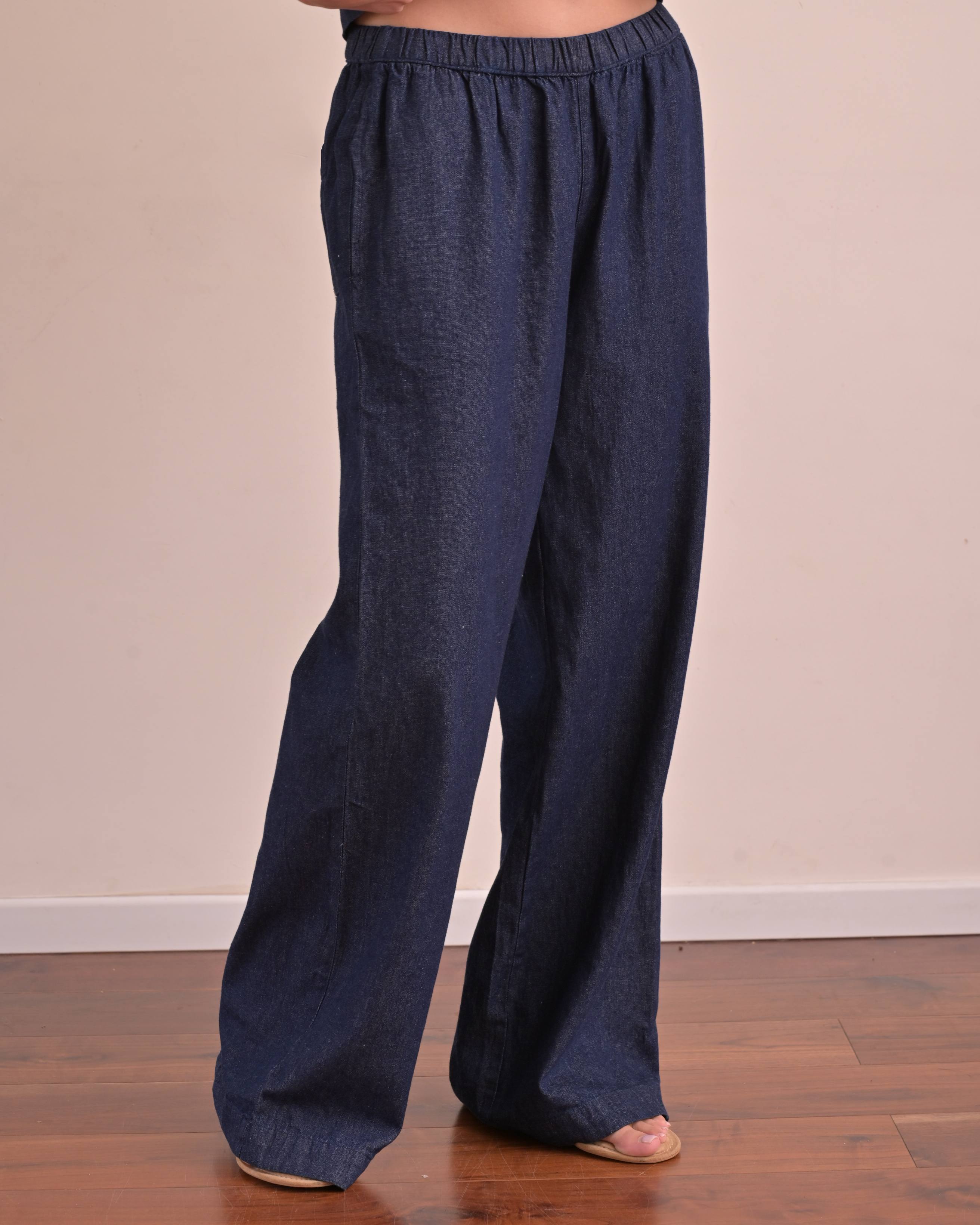 About the fabric: This is a mid-weight denim fabric in a dark wash. It’s perfect for summer or colder months and is 100% cotton.