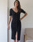 Soft ribbed knit cotton dress with button details. Open v-neck with front slit, dress it up with heels or wear it casually with sneakers.