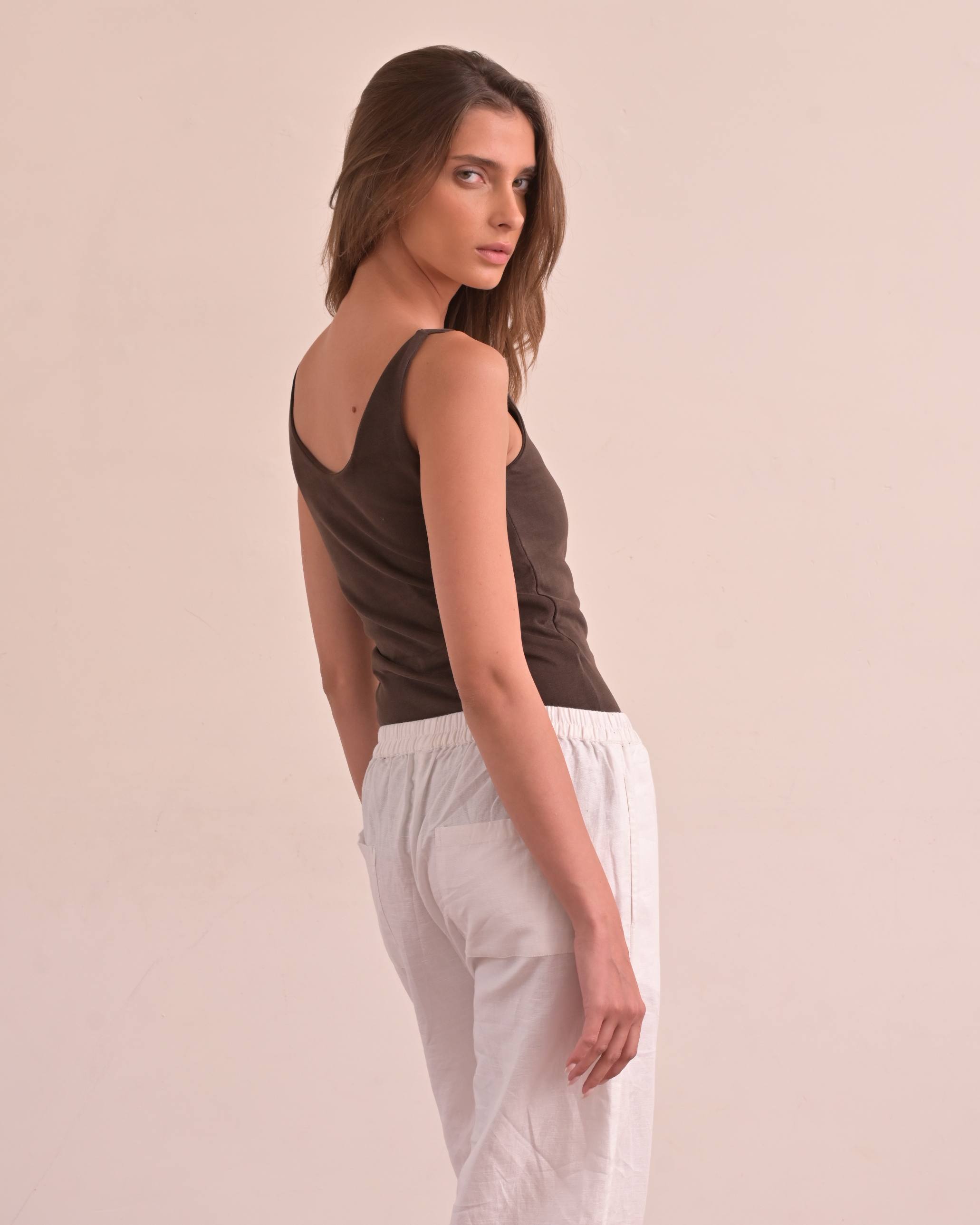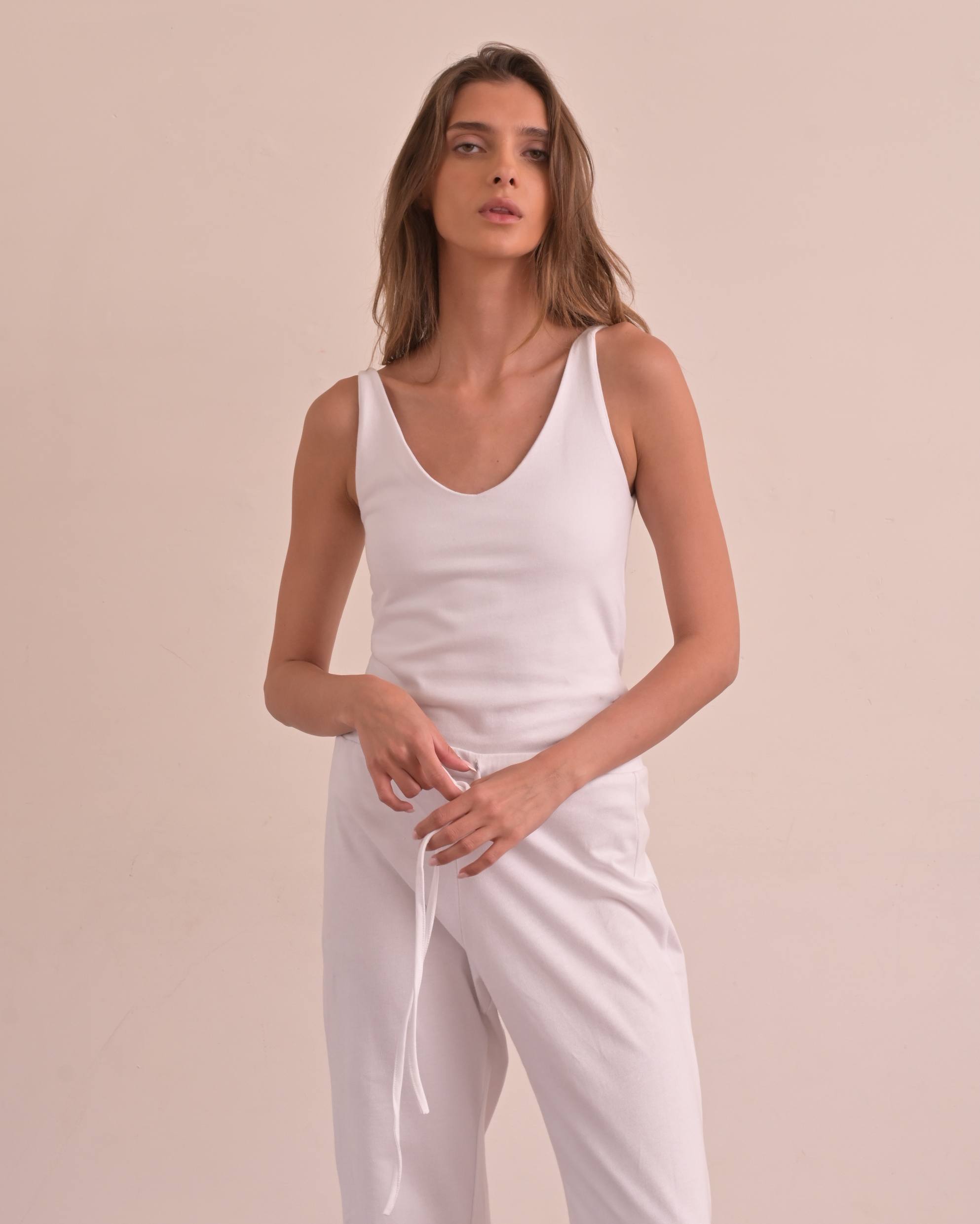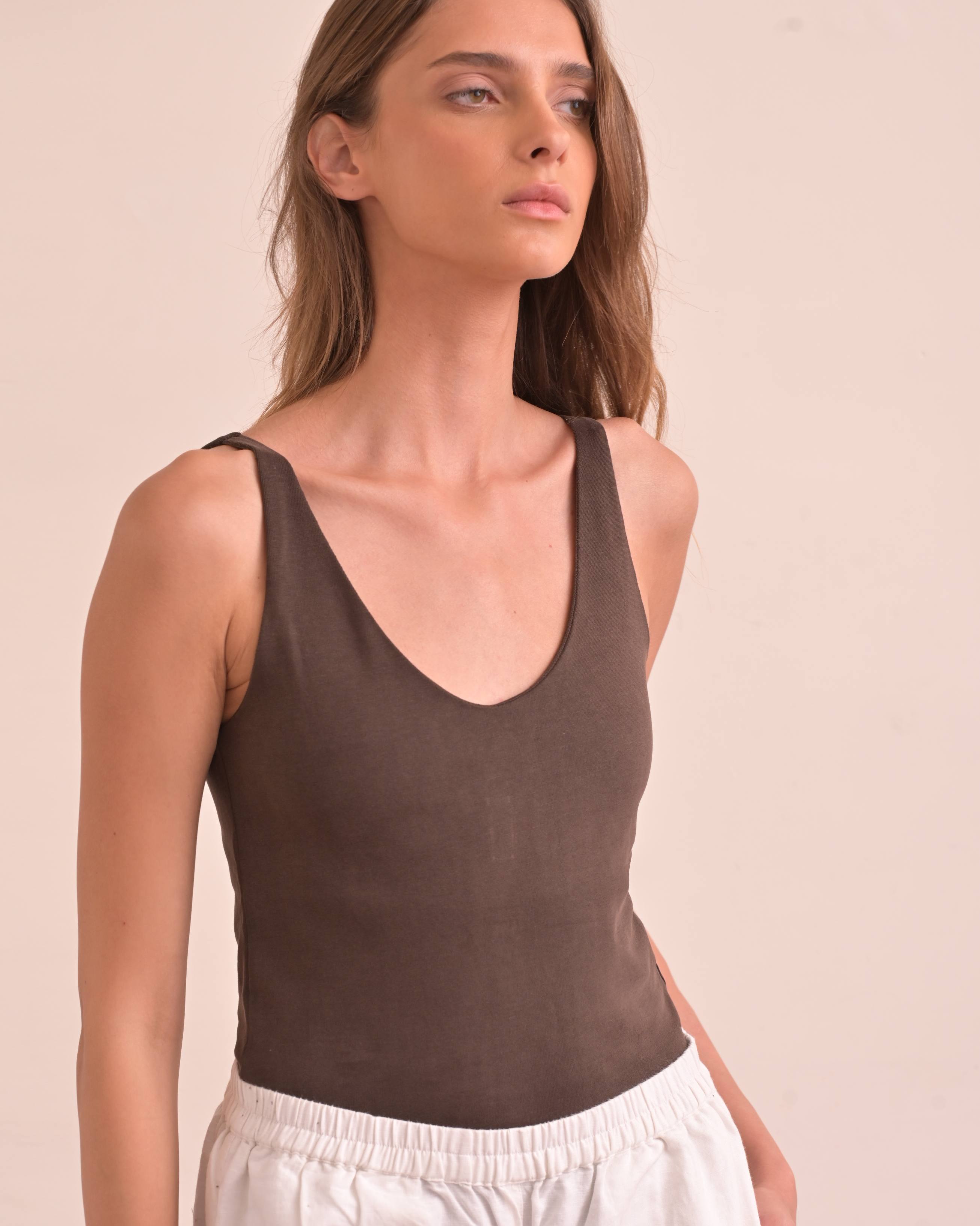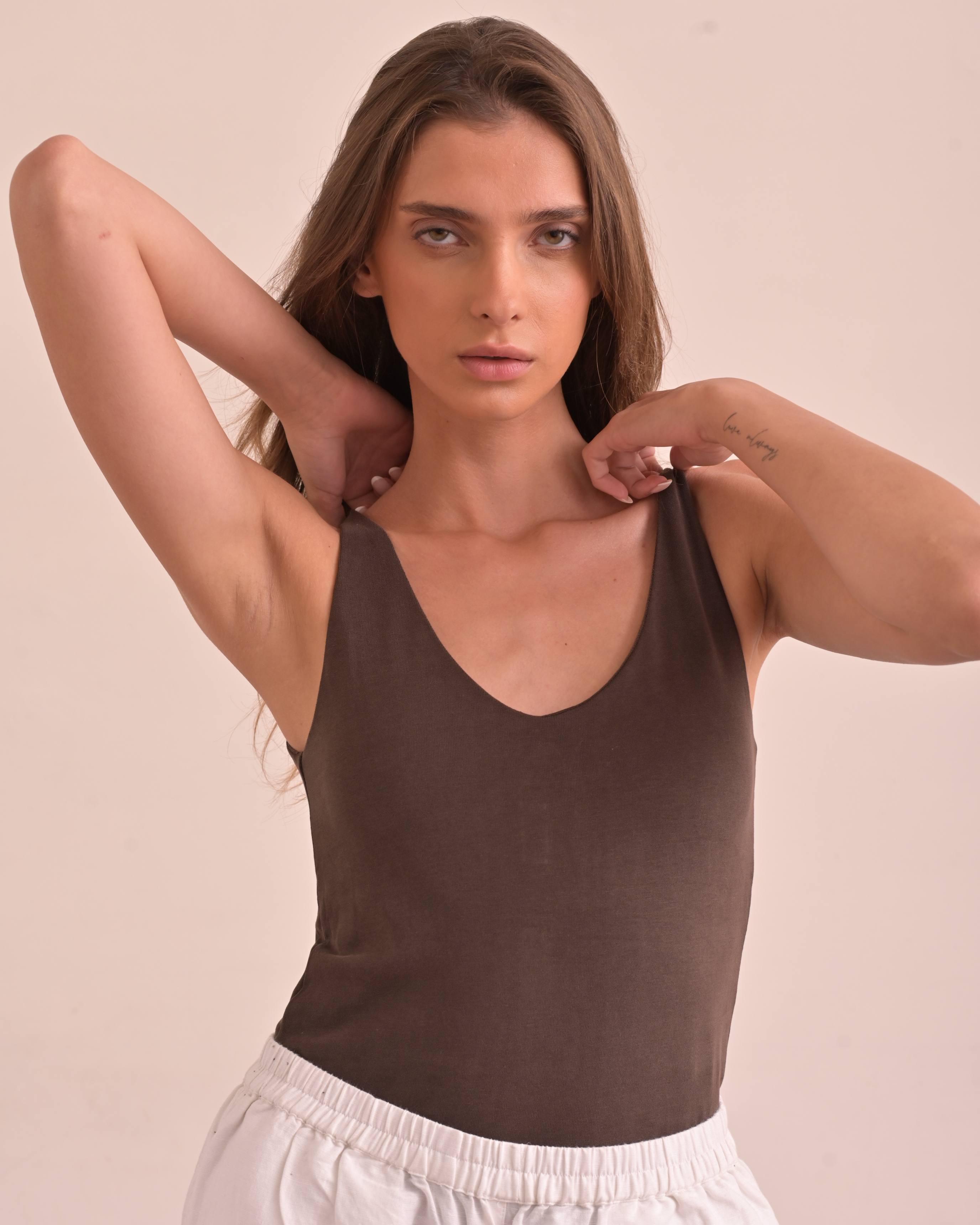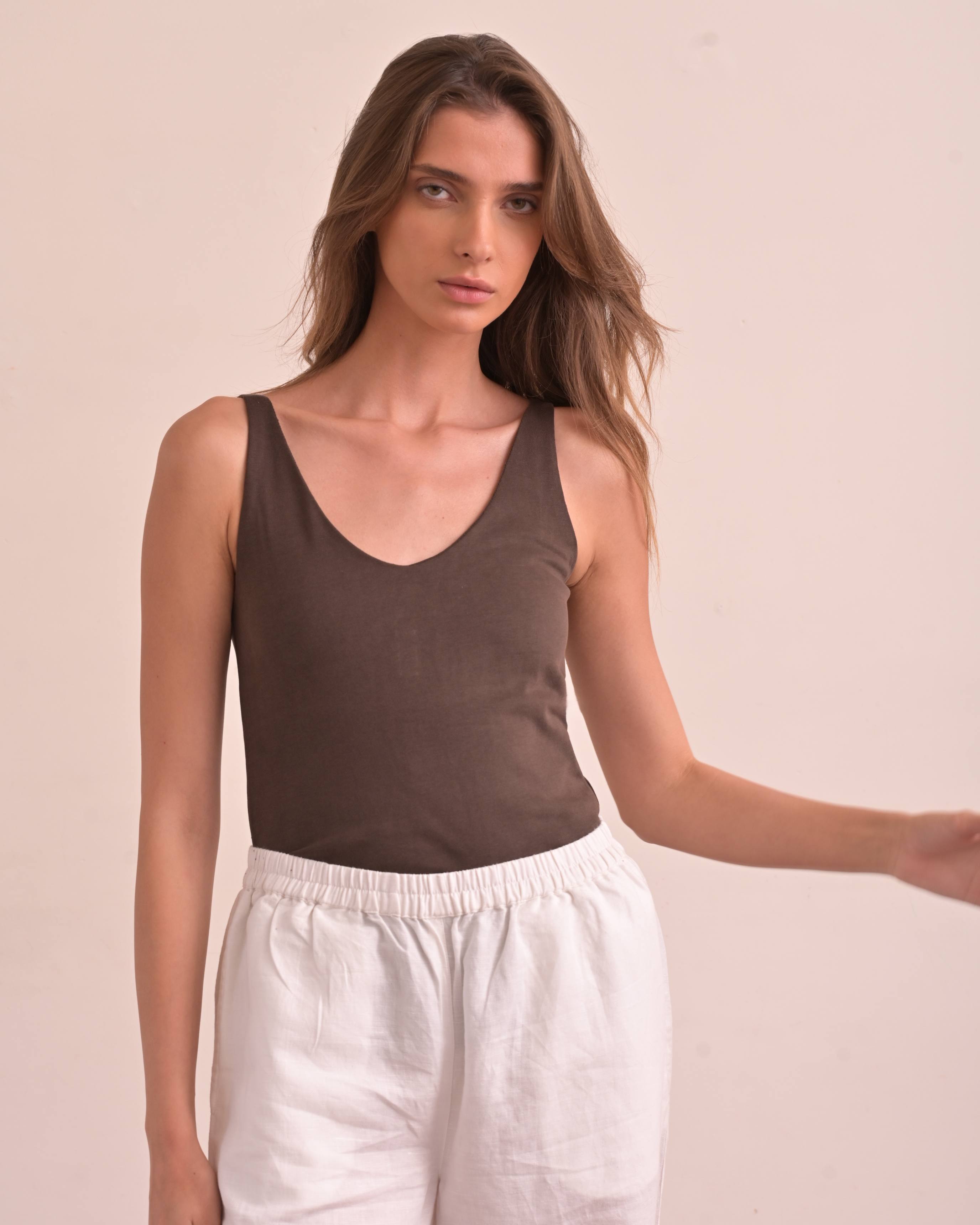 The Style: This is a v-neck style tank with lining, so it can be worn without a bra and has no seams in the neck and armhole openings for an elegant finish. The length is medium length so you can tuck it in to look like a bodysuit or wear it normally.