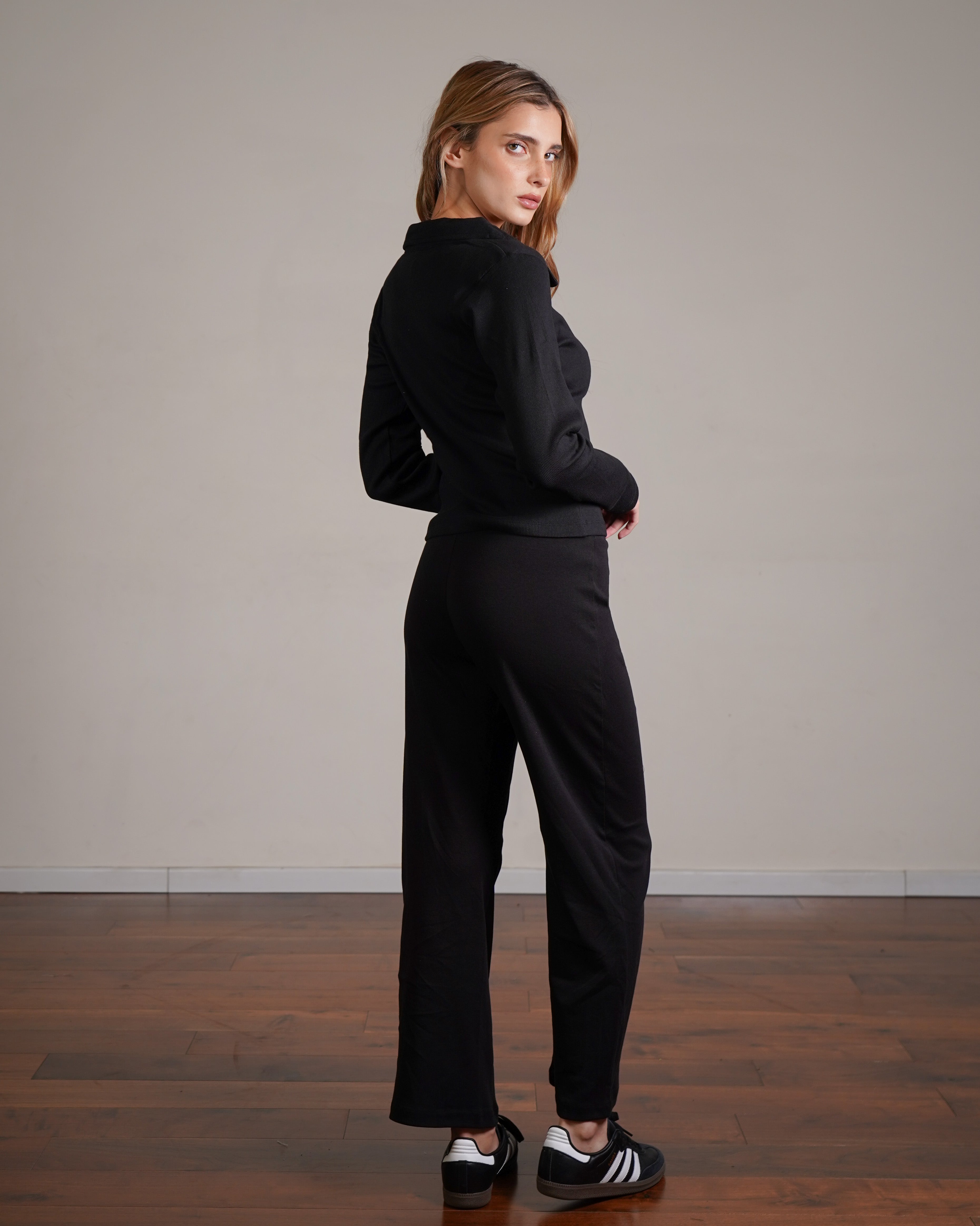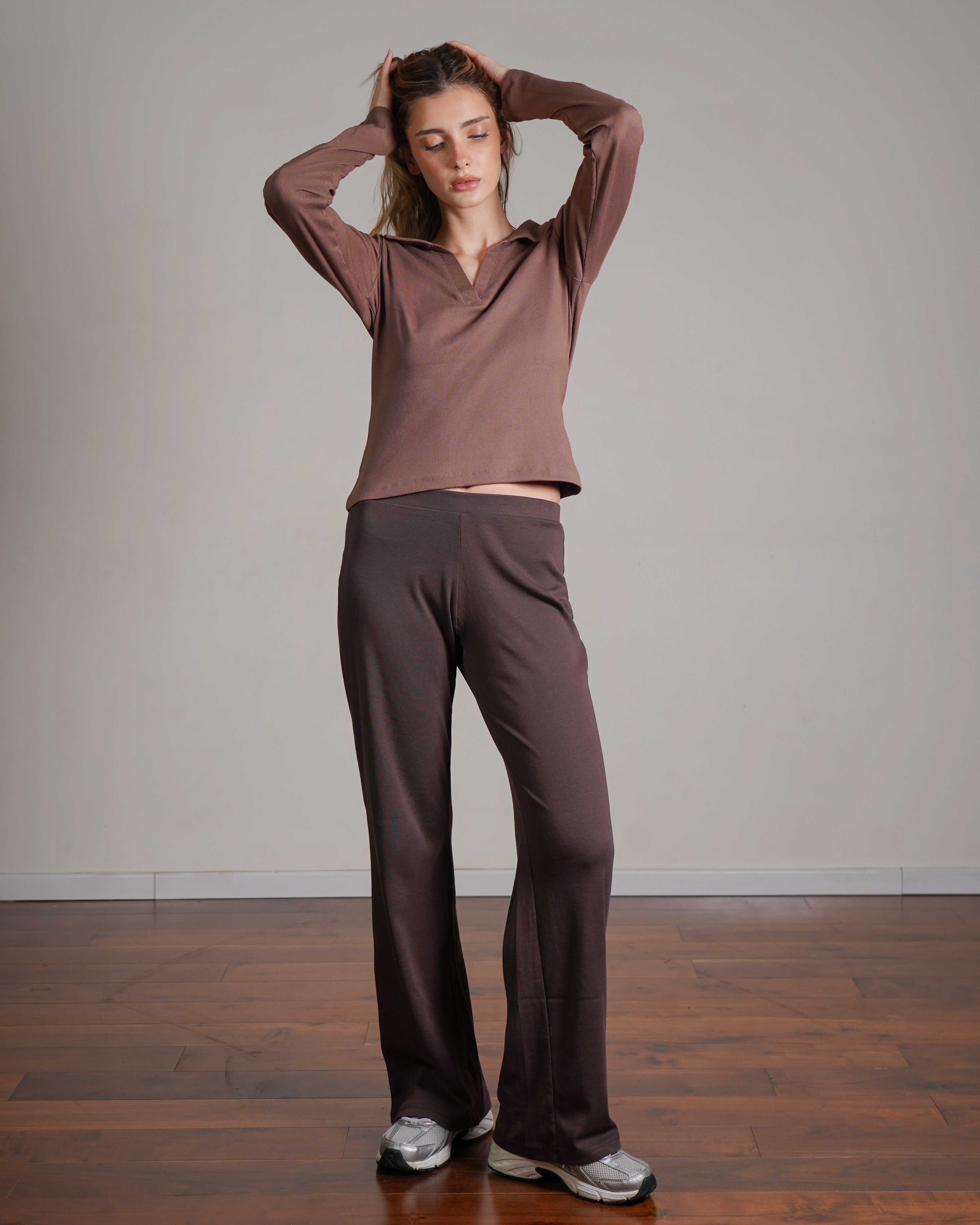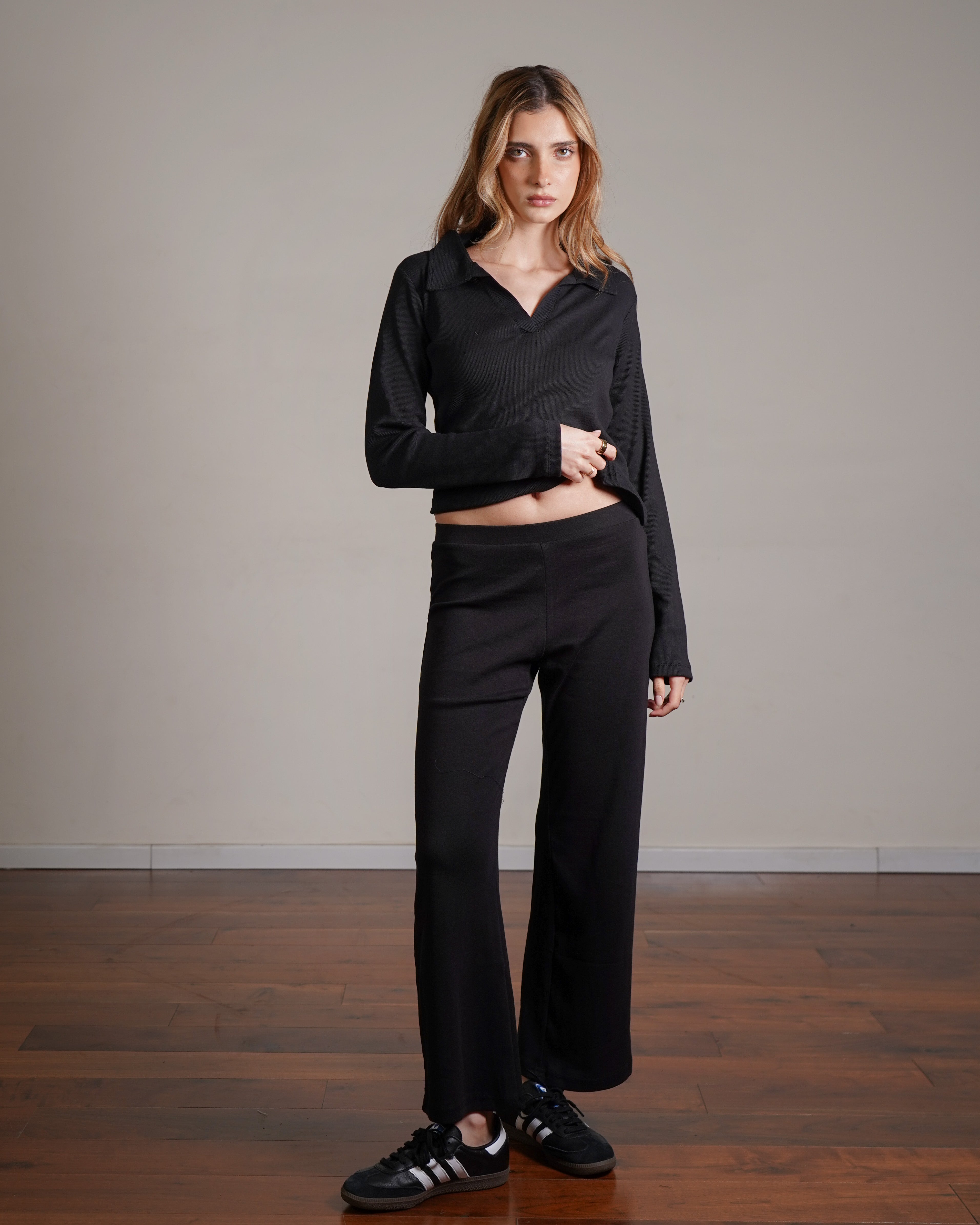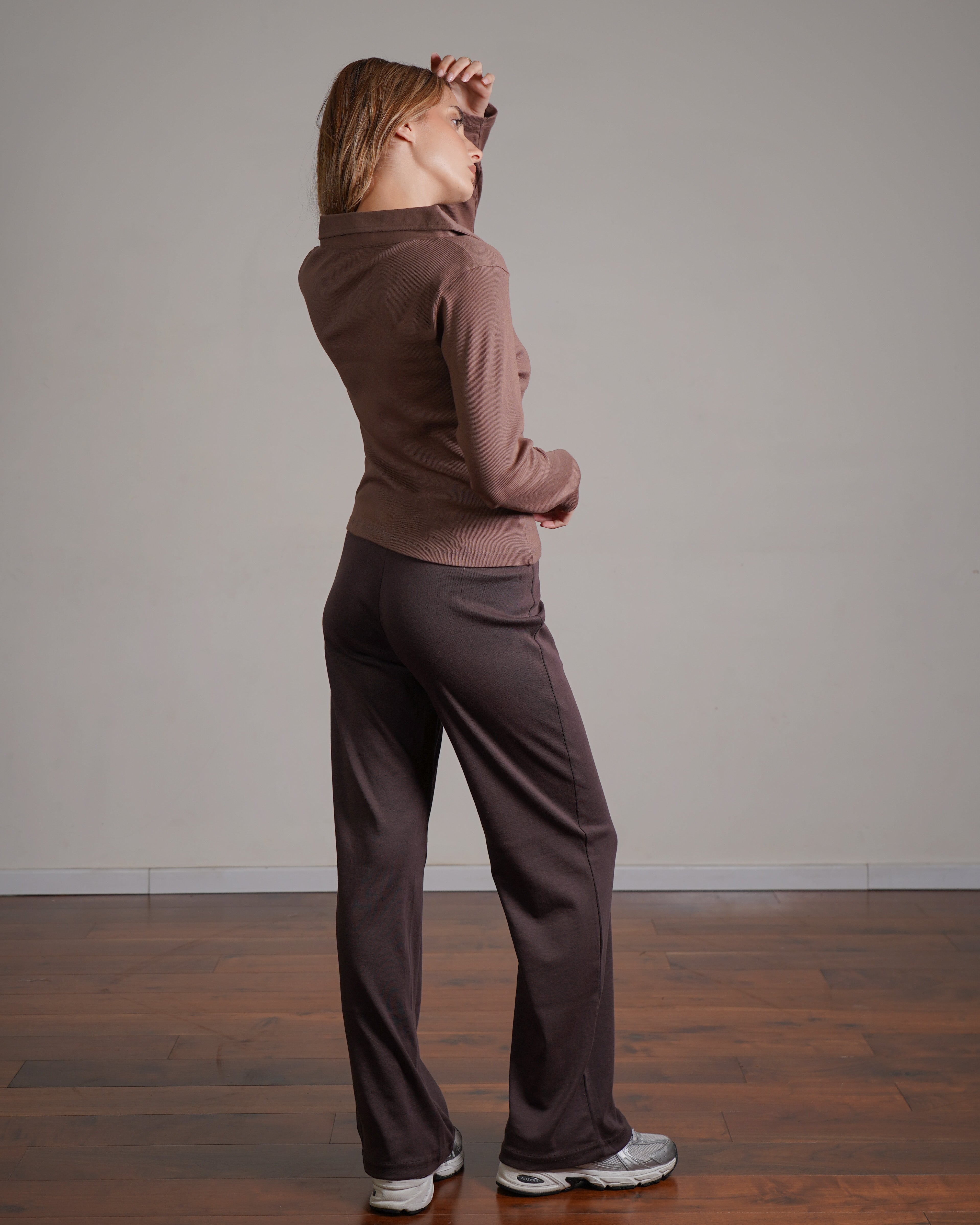 טופ ריב מכותנה עם צווארון. מיוצר בהודו מבד ריב רך מ־100% כותנה, בצביעה ייחודית. ניתן לשלב אותו עם סטים לאימון או ללבוש ביום־יום ואף למשרד. פריט בסיסי ורב־שימושי לארון, העשוי מהבד הנושם ביותר.