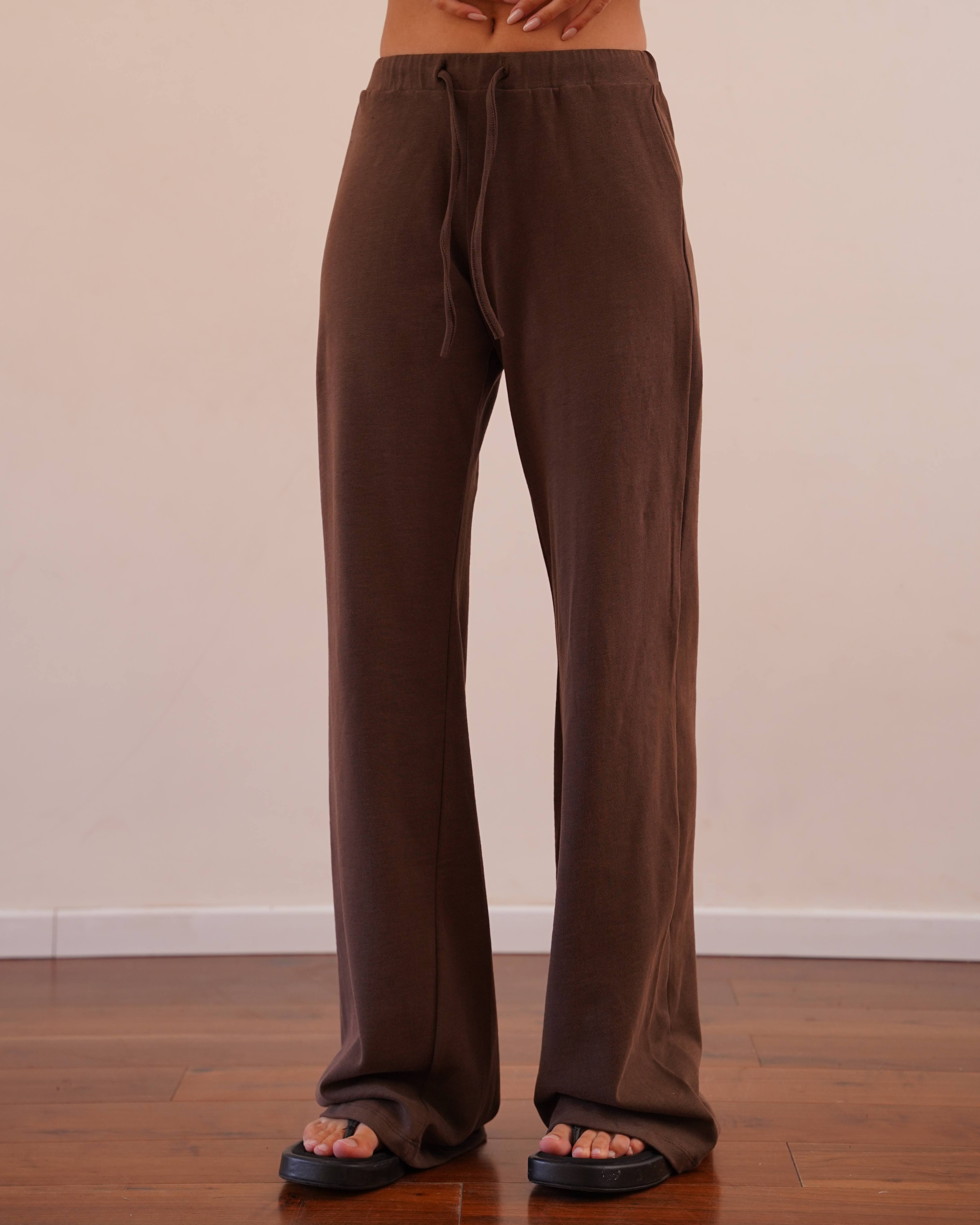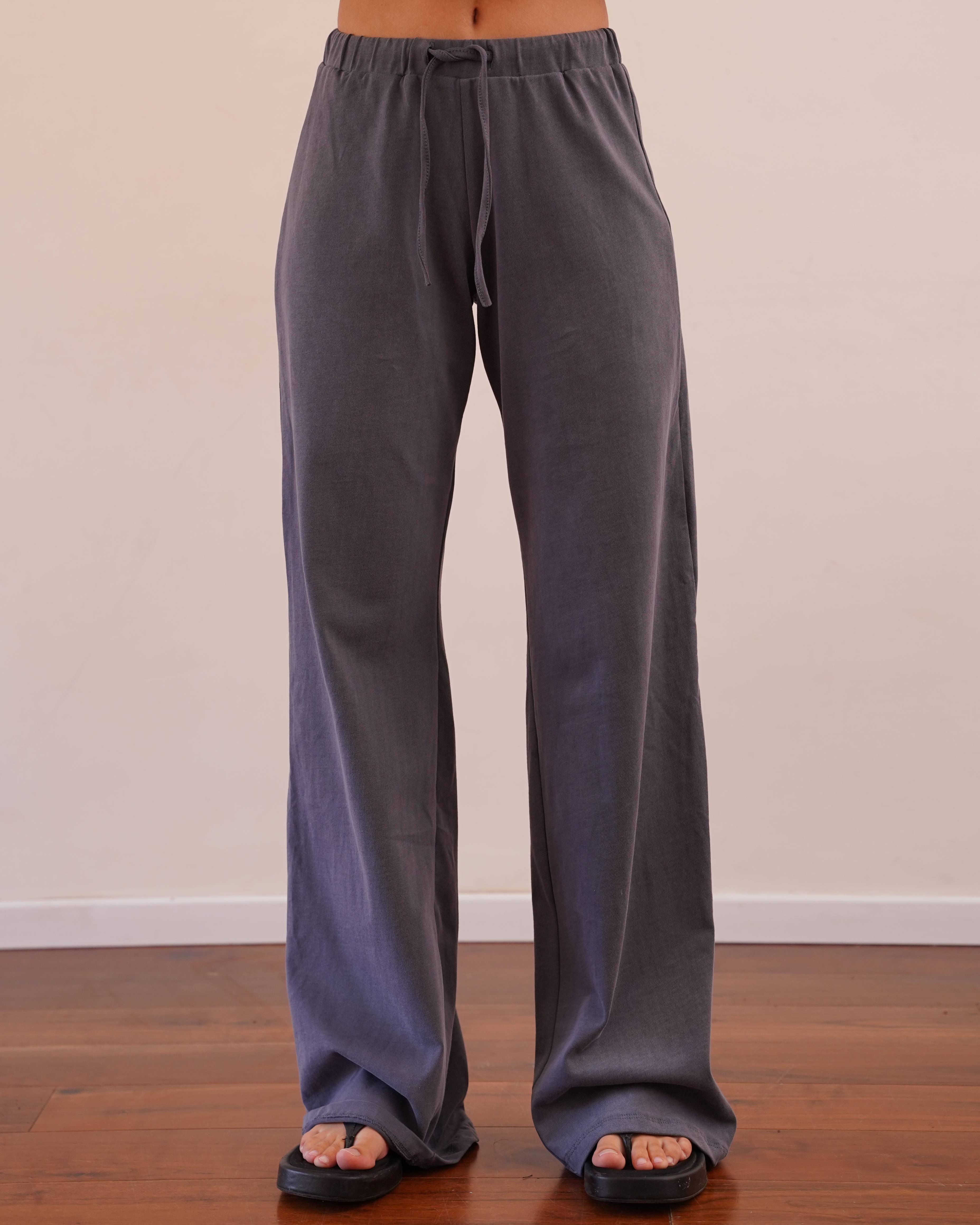The Style: These are wide leg style pants with a drawstring. The rugby knit fabric gives them minimal stretch but good coverage so they are only slightly transparent. They run long, but 100% cotton does slightly shrink in the wash so please keep that in mind before deciding they are too long or altering their length.